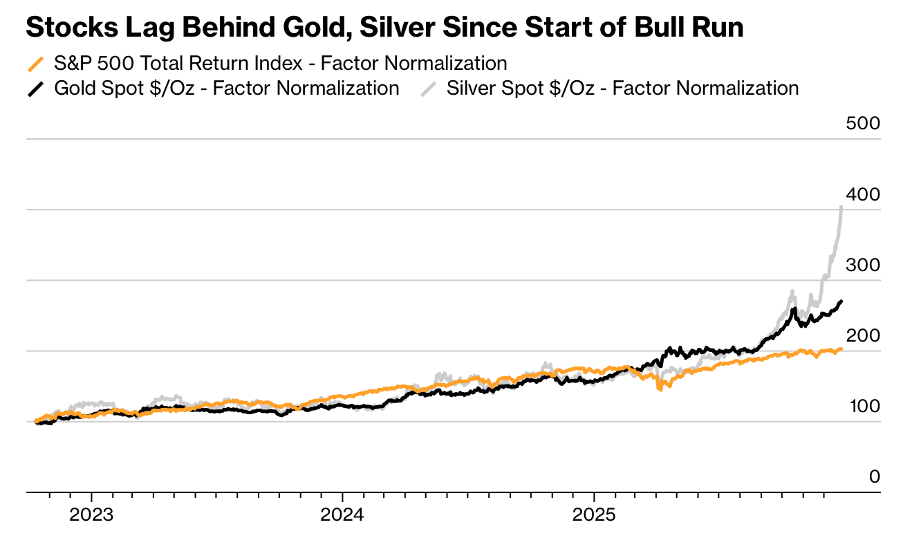 Interessante notare che c'è chi ipotizza una rotazione di capitali da metalli (dopo il loro mega-rally) verso BTC nel 2026... staremo a vedere!