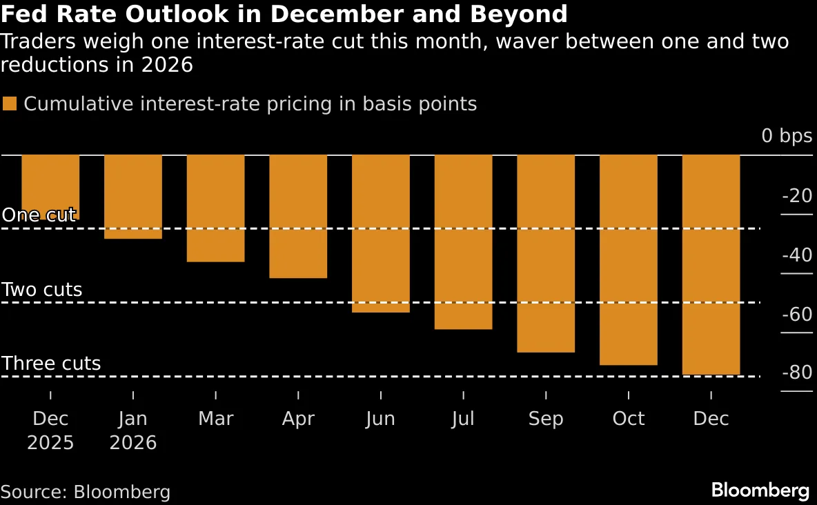 La Fed è ampiamente attesa a tagliare i tassi di 25 punti base questa settimana, ma diversi operatori avvertono che la banca centrale potrebbe indicare una fase di allentamento più graduale in futuro. Le persistenti pressioni inflazionistiche e la carenza di nuovi dati a causa dello shutdown statunitense stanno creando divisioni interne tra i policymaker. Dopo il taglio atteso, il mercato monetario stima due ulteriori riduzioni entro fine 2026, in calo rispetto alle tre previste appena una settimana fa. Secondo HSBC, gli investitori restano prudenti e in attesa dei dettagli del comunicato FOMC e delle proiezioni.